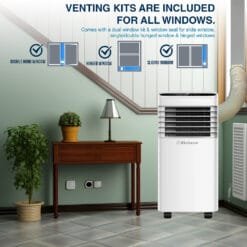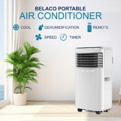 Belaco Air Conditioner of 9,000 BTUs, delivers an immediate cooling in your Home, Bedroom, Cabin, Office, Living Room, Kitchen. The Portable Air Conditioners gives 7000BTU power on speed 1 and 9000BTU power on speed 2 which is ideal for space up to 215 square feet.