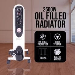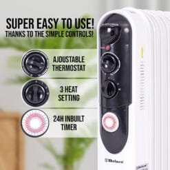 Belaco BEL-OH221 Oil Filled Radiators 11 Fins Portable Electric Heater, 24H Timer Thermostat Control, Portable Heater, Electric Radiator, Overheat Protection 2500W Energy Efficient