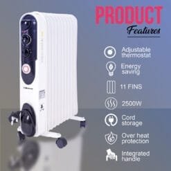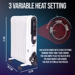 Elegant white oil filled radiator which will match with any interior colour of your house. It heats the room without taking up too much space. This heater is perfect for any home or office.