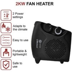 Elegant Black fan heater which will match with any interior color of your house. It heats the room without taking up too much space. This heater is perfect for any home or office.