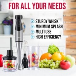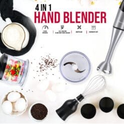 MULTI FUNCTIONAL 4IN1 HAND BLENDER: Belaco 4 in 1 Hand Blender set includes 4 accessories Stick Blender, Chopper Bowl 600ml, Whisk & Beaker 500ml.can be used as a food processor, Food Chopper, Smoothie blender, Soup mixer, Egg mixer, Hand Blender, Hand Mixer etc