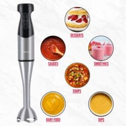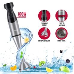 EFFICIENT PERFORMANCE: The Belaco Hand Blender has powerful 800W DC Motor with sharp blades which makes food mixing more efficient, evenly, and smoothly.