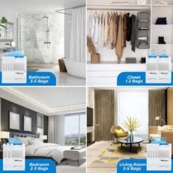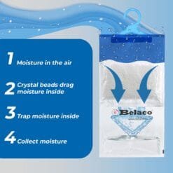 Whether it’s a small apartment or a larger house, the Belaco best dehumidifiers are versatile enough to meet various needs. Regular use helps prevent mold and mildew buildup, protecting your belongings from damp damage. Make your home a healthier place with the Belaco set of 12 hanging best dehumidifiers.