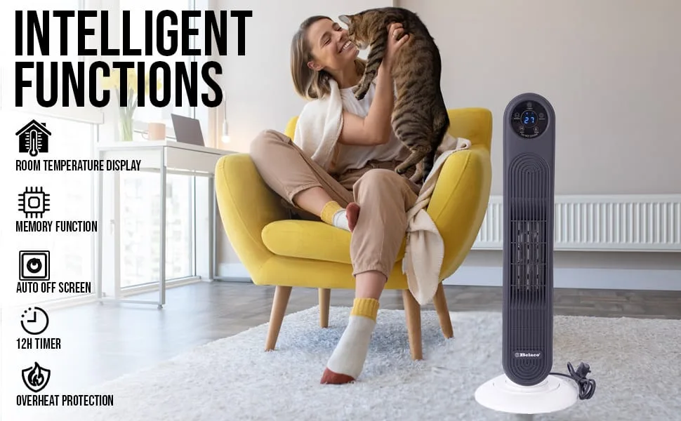 - 【INSTANT HEATING】 Belaco PTC Ceramic Tower Heater is best if you want to warm yourself in a second. It has special heating method which heats up in just few seconds. The oscillating function oscillate warm airflow all around your room and heats up in few seconds. This heater is ideal for living rooms, bedrooms, office, caravan etc