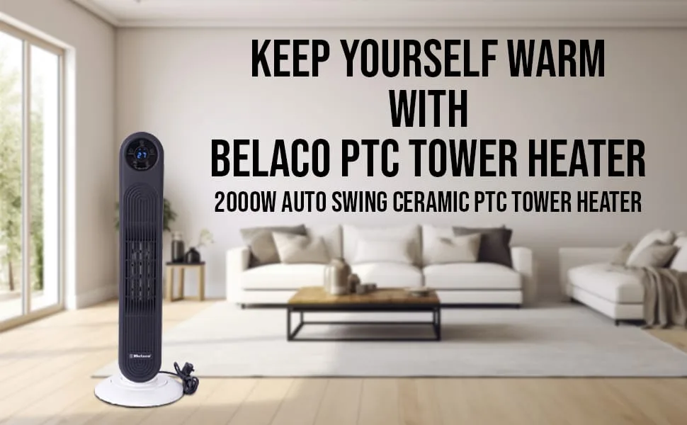 - 【INSTANT HEATING】 Belaco PTC Ceramic Tower Heater is best if you want to warm yourself in a second. It has special heating method which heats up in just few seconds. The oscillating function oscillate warm airflow all around your room and heats up in few seconds. This heater is ideal for living rooms, bedrooms, office, caravan etc
