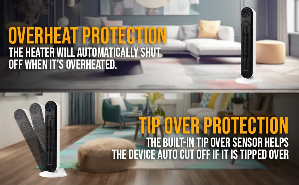 - 【 SAFE TO USE】 This heater comes with Safety Tip Over switch protection which would cut off the power of the heater if it’s knocked over or tilts too far.