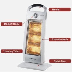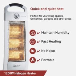 Belaco New upgraded Halogen Electric Heater Oscillating option portable heater 1200W home office room heater with free 3pcs tube replacement