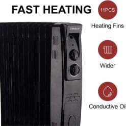 - 【SLEEK】Elegant Black oil filled radiator which will match with any interior colour of your house. It heats the room without taking up too much space. This heater is perfect for any home or office