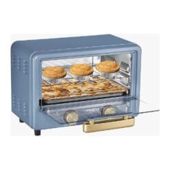 It is a powerful mini oven that has adjustable temperatures of 100°-230°C with a 60-minute timer and bell alert when cooking is finished.
