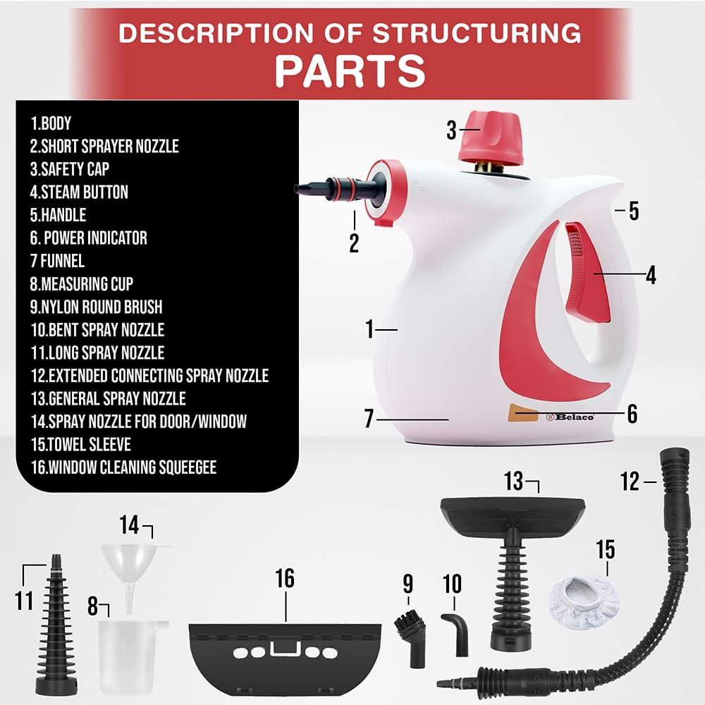 - Includes 9 Essential Accessories for Deep Cleaning: Comes with an extended nozzle, angled nozzle, round brushes, fabric tool, window squeegee and more — making it perfect as a tile grout steam cleaner, steam cleaner for bathroom tiles, and stubborn dirt removal.